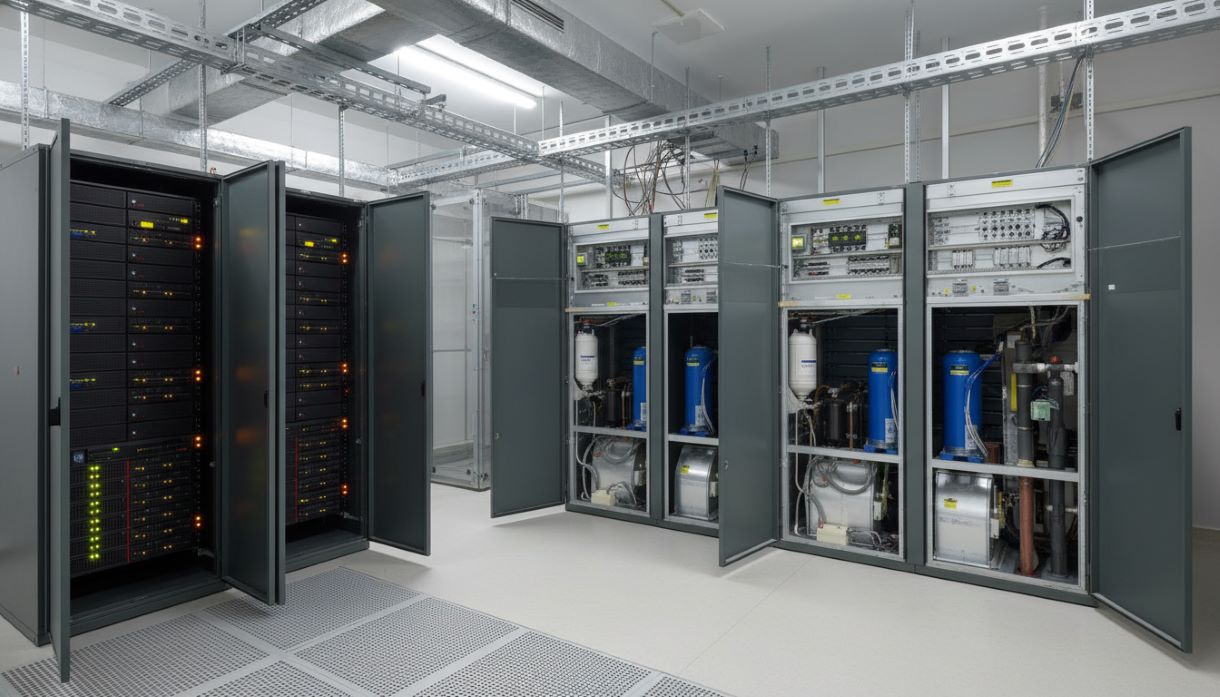 Контроль осуществляется за счет постоянного измерения показателей воздуха с помощью высокоточных датчиков и мгновенной корректировки работы всех компонентов системы. Автоматика регулирует мощность насоса, скорость вентилятора и работу модуля увлажнения/осушения, чтобы поддерживать строго заданную температуру и уровень гидратации. Этот процесс непрерывен и направлен на компенсацию динамически изменяющейся тепловой нагрузки от работающих серверов. Именно непрерывный контроль и мгновенная реакция отличают систему от обычного кондиционера, обеспечивая идеальный климат.