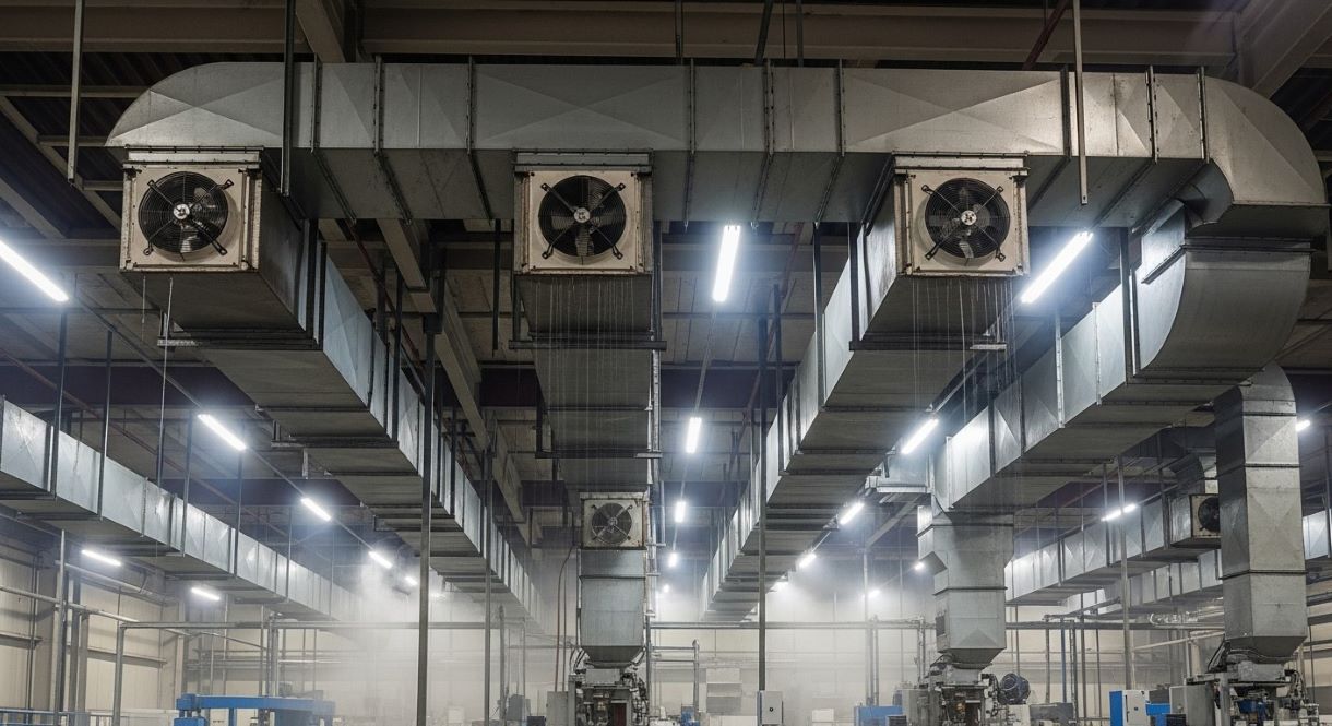 Промышленное охлаждение воздуха основывается на физических принципах принудительного отбора тепловой энергии из воздушной среды производственных зон. В отличие от бытовых аналогов, промышленные системы рассчитываются на более высокие тепловые нагрузки и непрерывный режим эксплуатации. Создание стабильных условия для работы технологического оборудования достигается за счет точного поддержания температуру воздуха в заданных технологических пределах.