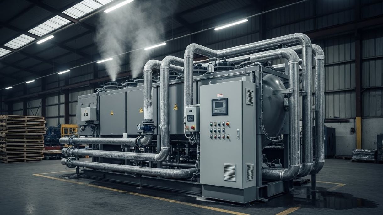 В системах с воздушным охлаждением конденсатора добавляется шум от мощных вентиляторов, которые могут создавать заметный воздушный гул. Кроме того, пульсации хладагента в цикле и вибрации от компрессора передаются по трубопроводам с водой, превращая их в своеобразные «рупоры», разносящие звук по всему зданию. Именно поэтому грамотное размещение чиллера и применение виброизоляционных средств — не просто рекомендация, а необходимость для обеспечения тишины.