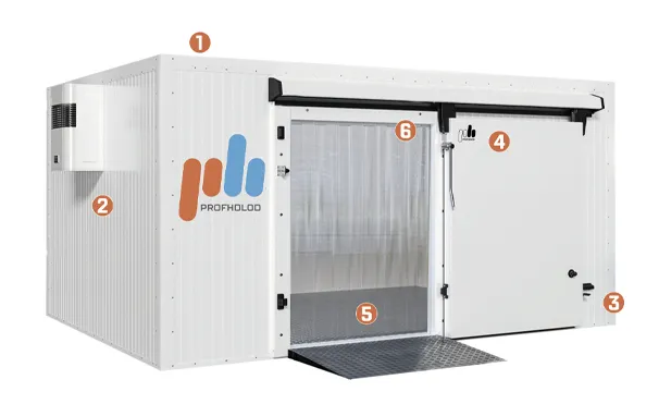 Камеры собираются из сэндвич-панелей с огнестойким полиизоциануратом PIR Premier из лучших зарубежных компонентов или с пенополиуретаном PUR Classic, комплектуются распашными или откатными холодильными дверьми.