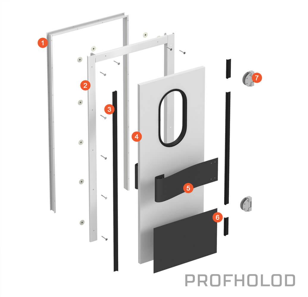 Маятниковые двери общего назначения производства завода «Профхолод» могут быть изготовлены со следующими дополнительными опциями: