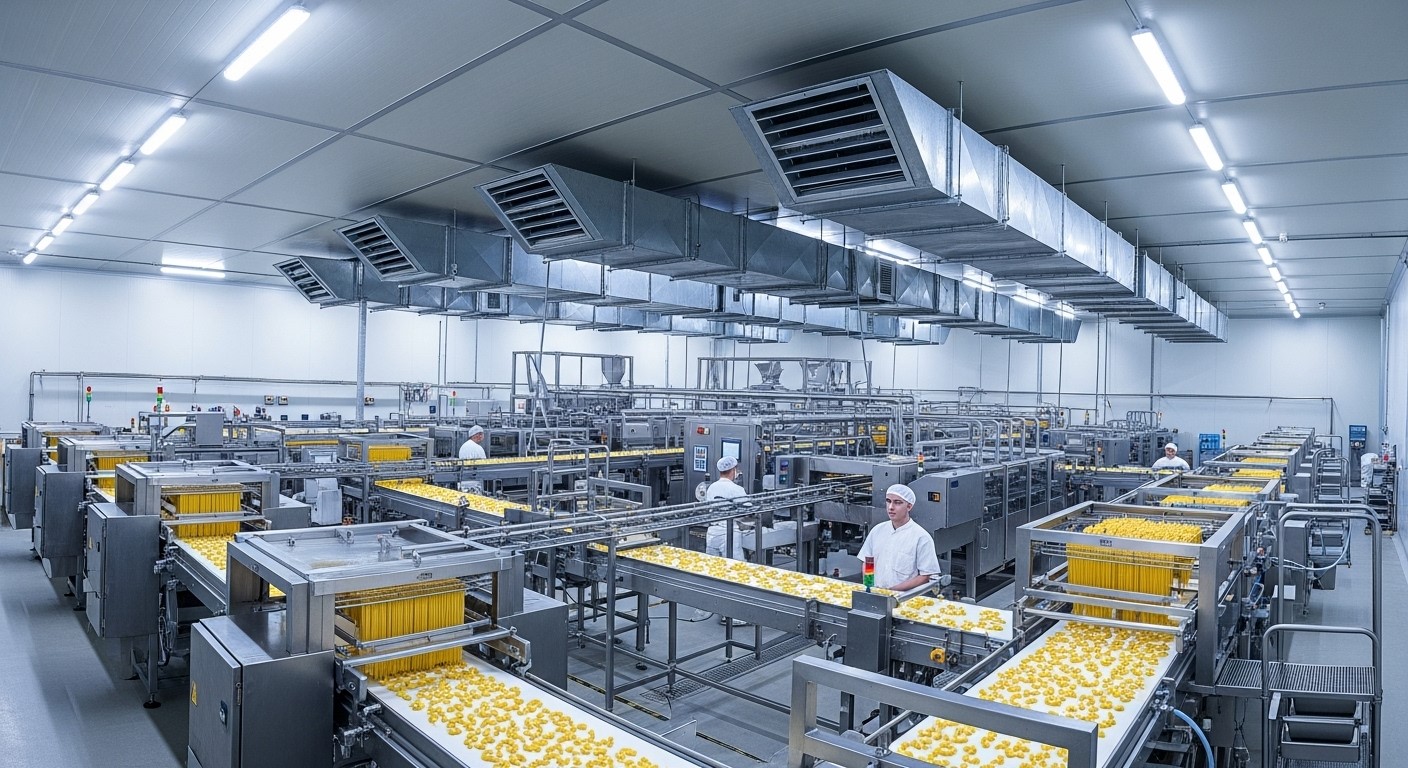 На каждом этапе создания пищевого продукта, от смешивания ингредиентов до этапа испарения лишней воды, организованный воздухообмен является неотъемлемой частью работы завода. Он отводит избыточное тепло, выделяемое аппаратурой, и обеспечивает штатные условия для работы персонала.